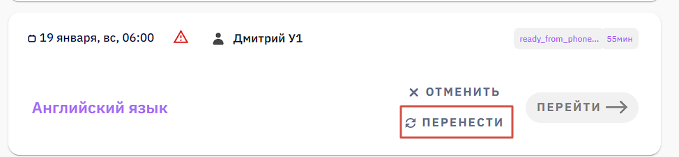 ❗ВАЖНО: перед тем как переносить урок, необходимо согласовать перенос с учеником