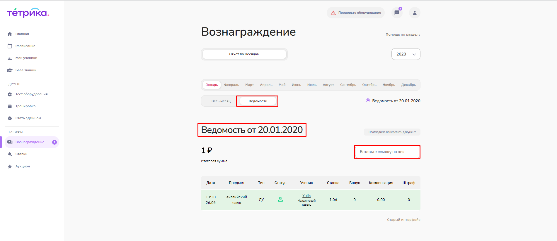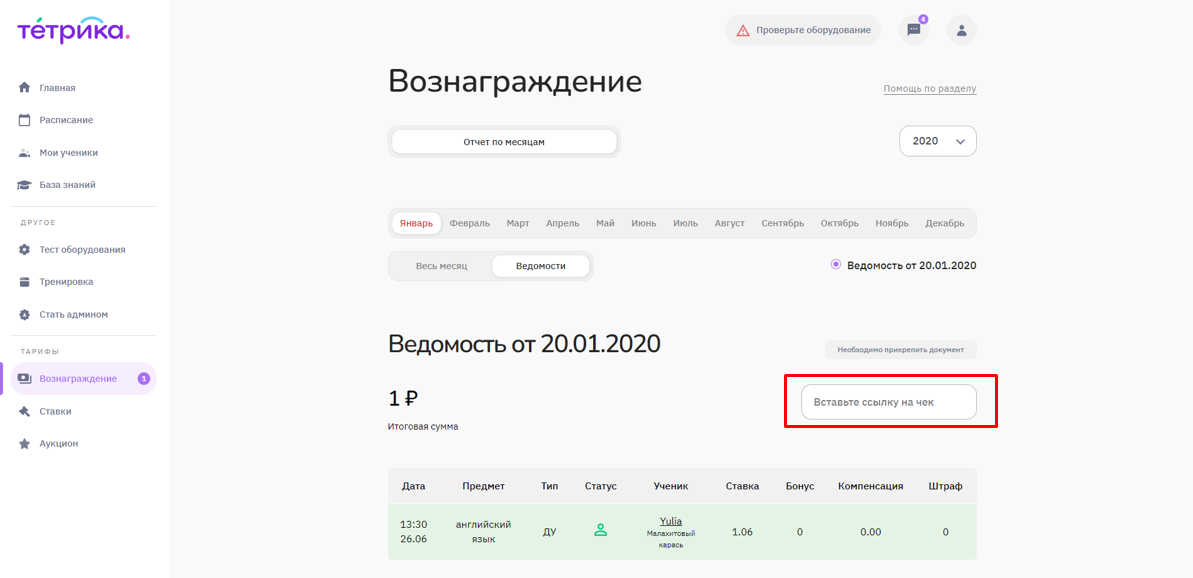 ❗Если вы получили вознаграждение по 2-м ведомостям (за учеников Учи.Дома и Тетрики), вам необходимо прикрепить 2 чека: