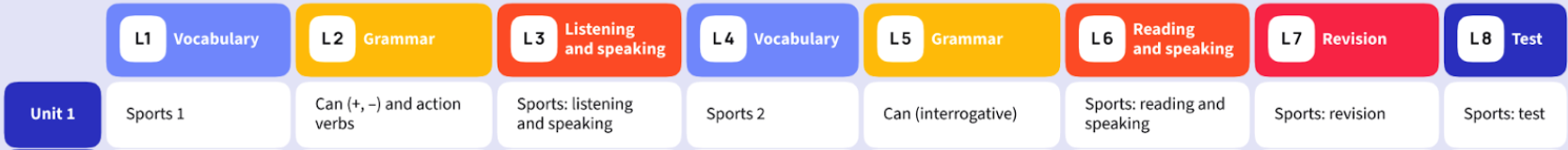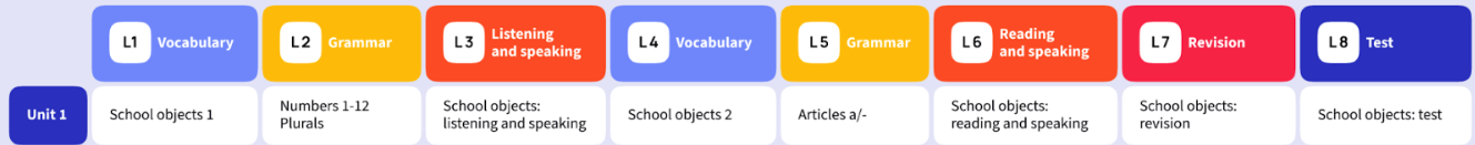 Рассмотрим типы уроков на примере 1-го юнита курса Kids+.