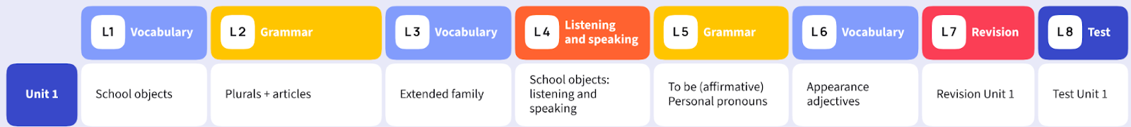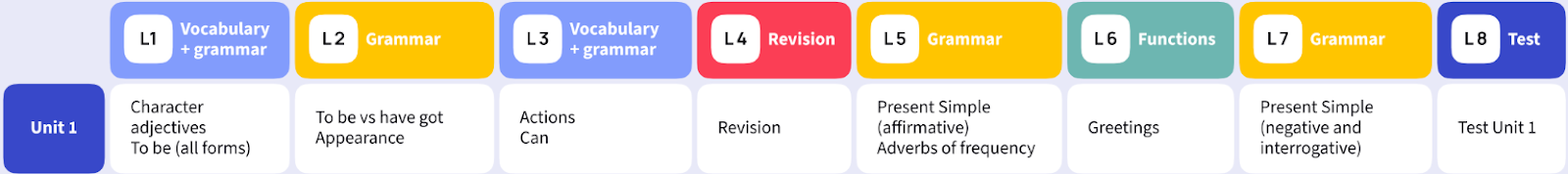 Рассмотрим типы уроков на примере 1-го юнита курса Junior+.