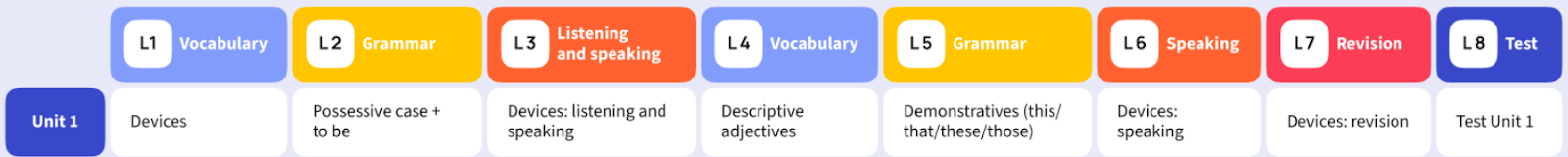 Рассмотрим типы уроков на примере 1-го юнита курса Pre-Junior.