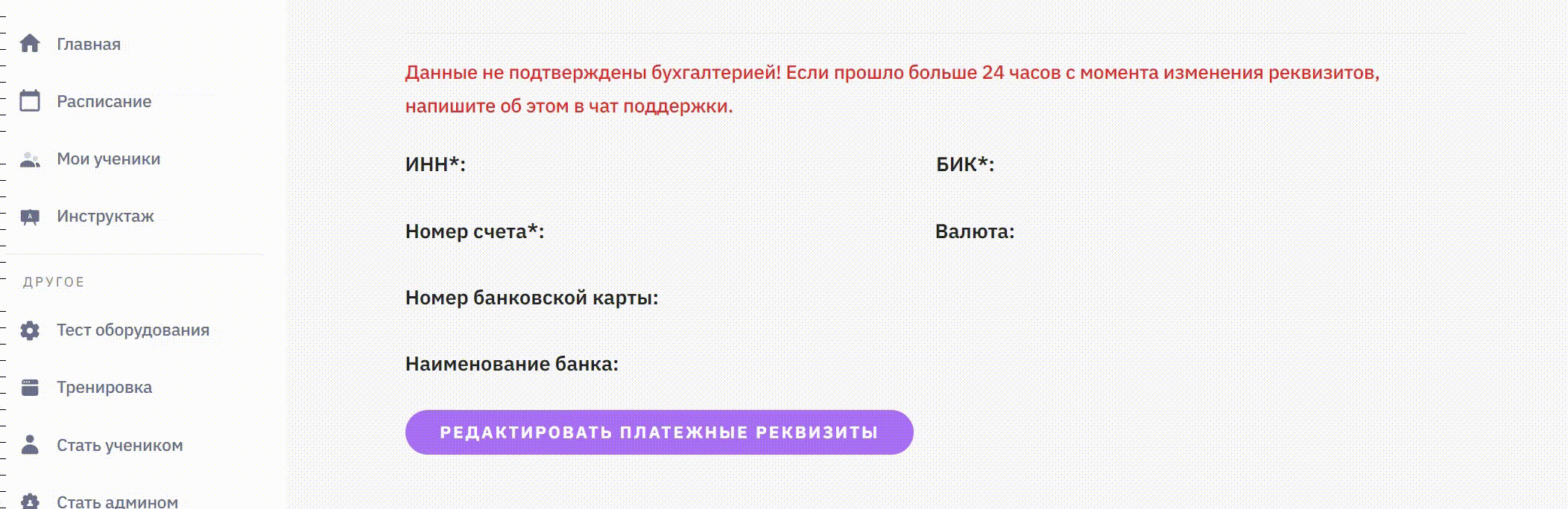 - реквизиты для оплаты (получить в банке и внести в форму в личном кабинете на платформе).